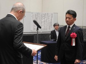 安全表彰では、安全に対する取り組みが顕著だった株式会社矢野興業と株式会社下森建装の2社、個人賞を受賞した▽長友和人氏(上田工業株式会社)▽竹本直哉氏(株式会社坂下組)▽弓削誠一郎氏(株式会社志多組)▽小西信照氏(神崎建設工業株式会社)▽上坂祐蔵氏(株式会社桜木組)ーの5人に表彰状と記念品を贈った。
