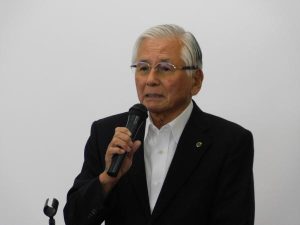 ▲写真は挨拶する山﨑相談役、研修会、表彰式の模様
