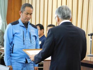 研修会に先立ち、25年度の優良工事技術者表彰も行われ、▽星川信行氏(株式会社奈須組)▽佐藤宗近氏(日新興業株式会社)▽矢野義明氏(八作建設株式会社)▽佐藤利幸氏(株式会社盛武組)―に山﨑相談役から賞状が贈られた。