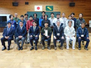 10月31日に宮崎県林業技術センターで行われた寄贈式には、コマツ宮崎の後藤社長や比良元尚取締役、同センターの松永雅春所長(みやざき林業大学校校長)と同校の研修生15人が出席。後藤社長が研修生の中山隼氏に目録を贈呈した。