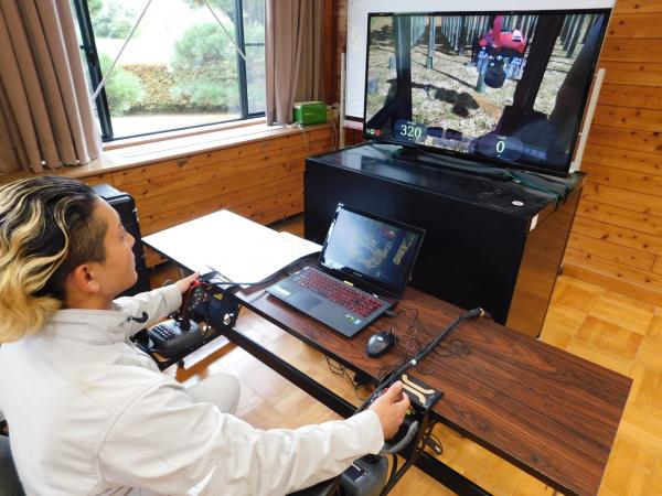 同社のシミュレータは、室内での操作訓練が可能となり、経験の少ない林業従事者が現場に出向くこと無く、天候にも左右されずに、安全・安心に技術力のアップを図ることができる。