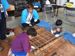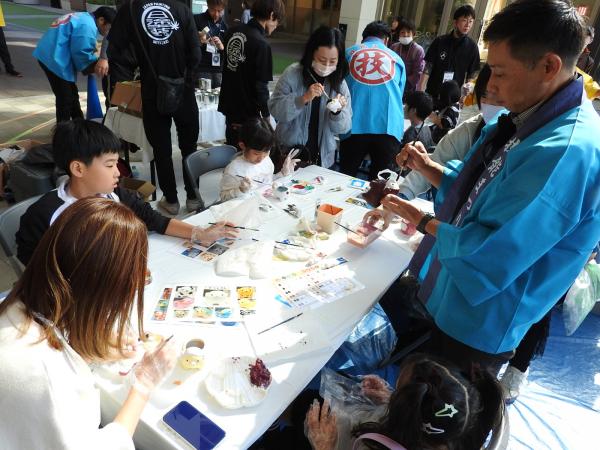 宮崎県鉄筋業組合は、手作業や電動工具で鉄筋の結線・切断体験を行う体験コーナーを設置。型枠技能士会は、L型擁壁型枠の組立体験コーナーを設置した。塗装技能士会は、塗料を使って動物を模したミニチュア植木鉢を好きな色に塗り上げる体験コーナーを設置し、受け付けには順番を待つ親子連れが長い列を作った。