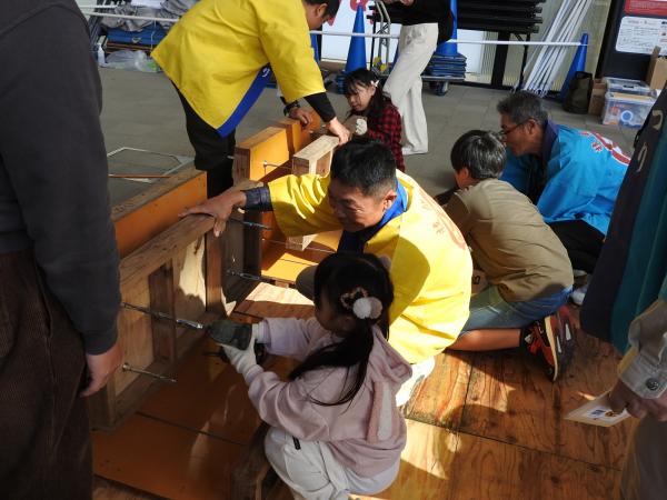 宮崎県造園技能士会は、植物と流木、石、苔を自由に組み合わせるミニ箱庭の作成体験を実施し、大人から子どもまで幅広い年代が参加した。宮崎県板金工業組合は、銅板による一文字・折り鶴作成体験コーナーを設置し、広告美術技能士会は、カッティングシートを使ったクリスマス装飾品の作成体験コーナーを設置した。