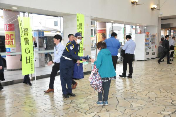 11月1日は「警備の日」。一般社団法人宮崎県警備業協会(末益秋仁会長)は10月31日、宮崎市の宮交シティでキャンペーン活動を行った。多数の会員が歩行者にリーフレット等を配布しながら、職場や家庭の安心・安全を守る警備業の重要性を広く訴えた。