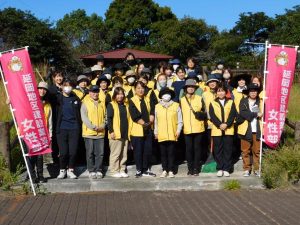 延岡地区建設業協会女性部(柳田茉莉子部長)は10月29日、延岡市の愛宕山公園で「ボランティア活動」を実施した。今回の奉仕活動には部員37人が参加。市の観光名所でもある同公園内で、遊歩道や展望台周辺の清掃作業に心地良い汗を流した。