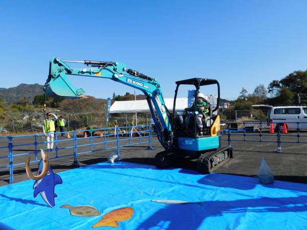 体験コーナーでは、ドローンの飛行実演や高所作業車への乗車体験、レンガを使ったアーチ橋造り、バックホウによる模型の魚釣り体験に子ども達が挑戦。モルタルを使った手形の作成体験やモザイクタイルの貼付体験、ミニユンボでのお菓子すくいなど、盛りだくさんのイベント内容に、各所で子ども達から大きな歓声が上がっていた。