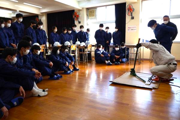 このほか、ハンドベンダーや旧型の手動ベンダーを使用した鉄筋の切断・曲げ加工体験も実施。宇治橋氏は、社会に出た際に必要なこととして「何事にも準備をして挑むことを忘れないで」と訴え、資格取得などに積極的に取り組むよう呼び掛けた。