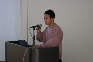 開会挨拶でJIA九州支部宮崎地域会の久寿米木和夫会長は、遠方からの来宮に感謝の意を示し、新進気鋭の建築家の講演を「興味深く拝聴したい」と挨拶した。