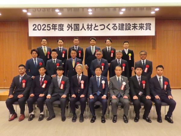 今回の表彰では、建設技能やコミュニケーションスキルの習得に励んだ特定技能外国人に対する「優秀外国人建設技能者賞」に6人、外国人材の育成や処遇改善を継続的に実施した企業をたたえる「外国人材育成賞」に6社、外国人材と地域社会の共生に向けた継続的な行動をたたえる「未来への取り組み賞」に5社などを選んだ。