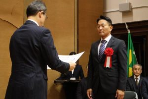 今年度の知事表彰は、最優秀健康長寿推進賞を山﨑株式会社、優秀健康長寿推進賞を株式会社F・Cガードと向農産加工株式会社、東郷メディキット株式会社の3社、奨励賞を株式会社西の丸がそれぞれ受賞した。