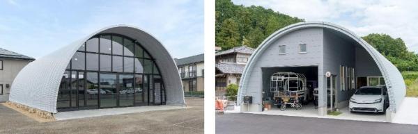 同社が直接受注する「STEEL ARCH」は、薄板軽量形鋼造によるアーチシェル構造で、梁や柱の無い大空間を有し、間取りは自由に設計が可能。他構造よりも低コストで、約30日前後で竣工できる。昨今の異常気象にも対応できるよう、インシュレーション工法による暑さ対策に加え、光熱費削減にも対応する。