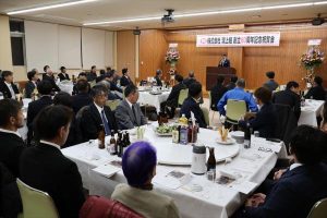 来賓祝辞で小林市の宮原市長は、「半世紀にもわたり、西諸地区のみならず、本県の土木・建設業界の第一人者として、県西地区の発展に多大な貢献をされた」と指摘。「厳しい経済環境下で、卓越した技術と経営体制を整え、輝かしい伝統と信用の上に立って、将来への一大飛躍を期待されることは誠に意義深い」と述べた。