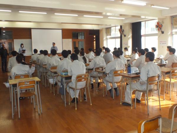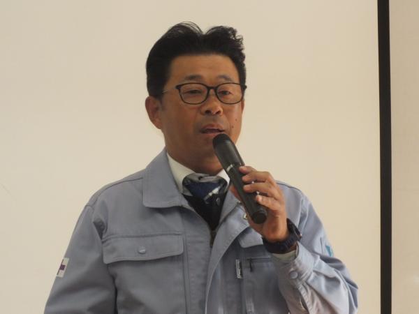 ▲写真は挨拶する山下社長、出前講座の模様