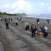 青島ビーチでゴミ拾いに汗・・・